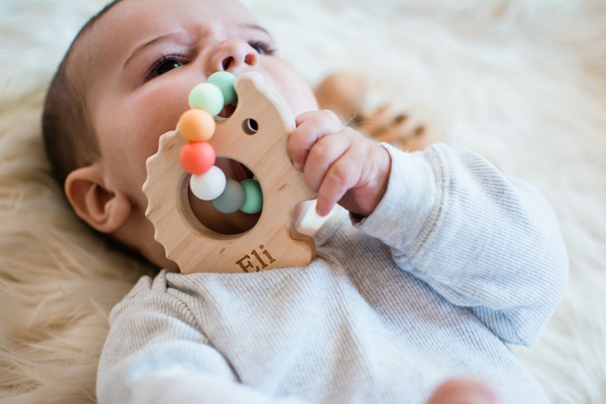 Our hedgehog grasping toy is made using hard maple which is naturally resistant to bacteria and it is non-splintering wood, so it's safe for baby to play with for hours! Its lightweight and easy to hold, working on all those gross motor skills that are so important early on! The teething beads make for a fun added texture for your little one!