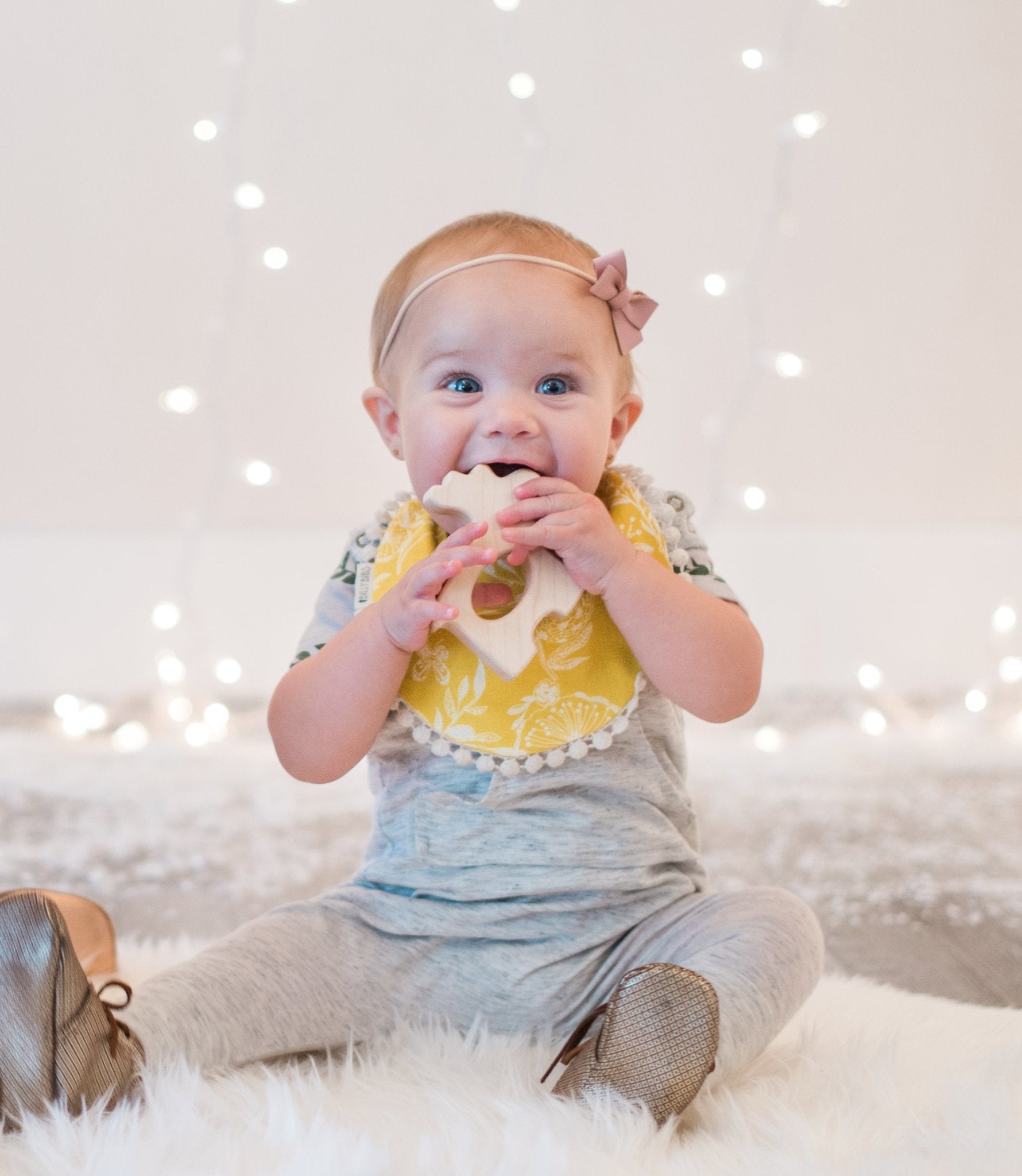Have a little one working on holding things? This moose toy is perfect for little hands trying to hold things! Lightweight and adorable, this toy will go everywhere with you!