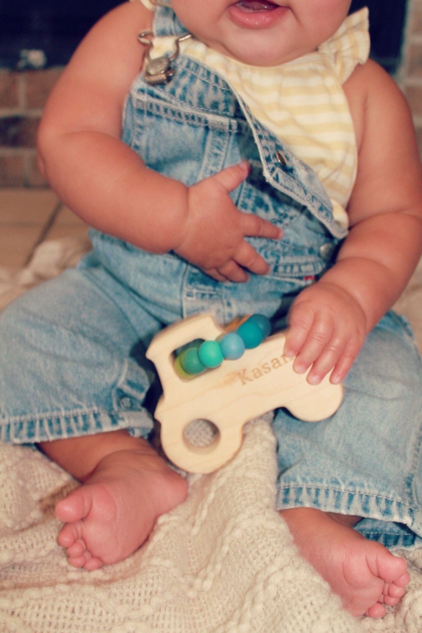 Calling America's Farmers! Our tractor toy is the perfect for your littlest farmer! Made from rock hard maple wood, this toy is non-splintering and naturally antibacterial. It has built in grasping spots and the silicone teething ring makes it extra soothing if you toss it in the freezer for a couple hours as it will hold the cold to make it more relieving!
