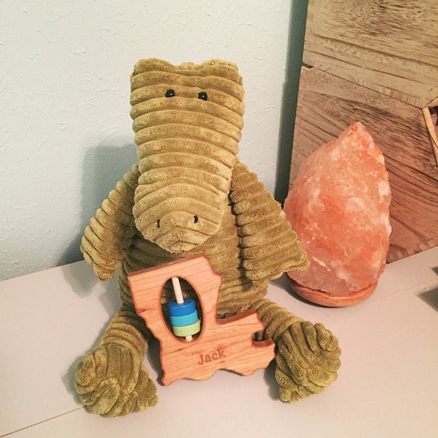 Show your state pride with this Louisiana State shaped baby rattle™. this rattle is made from solid hardwood Cherry. This baby rattle is 100% organic, made from responsibly harvested woods, and is sure to last long enough to be passed down through several generations in your family. The finish is safe yet durable and made from an organic mix of flaxseed oil and locally grown beeswax. Choose any 3 colors for your disks!