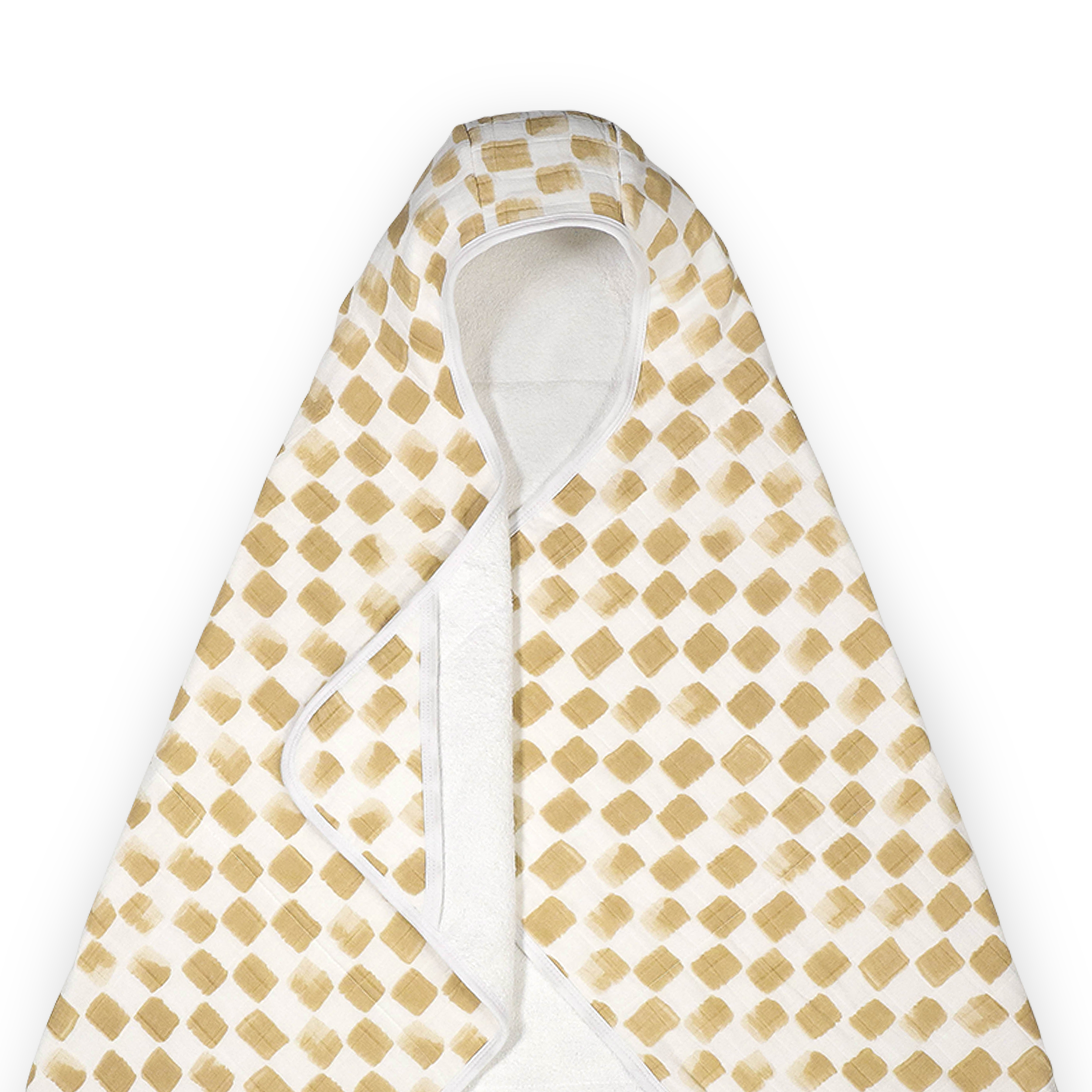 Splash into bath time with a plush and absorbent hooded towel. Featuring a cozy hood and pockets for little hands, the hooded towel is crafted with printed muslin on the outside and ultra-soft terry cloth on the inside.