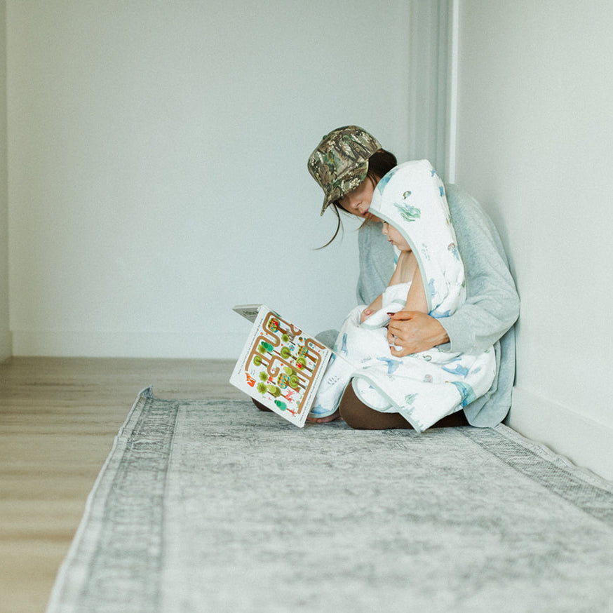 Splash into bath time with a plush and absorbent hooded towel. Featuring a cozy hood and pockets for little hands, the hooded towel is crafted with printed muslin on the outside and ultra-soft terry cloth on the inside.